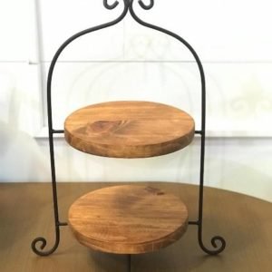 Suporte para doces 2 andares ferro e madeira – REF 57188