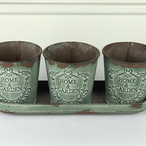Trio de vasos e bandeja verde claro rústico REF 60168