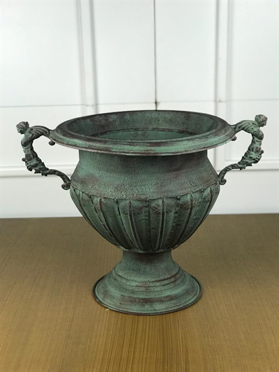 Ânfora Real metal verde envelhecida 32x34cm –