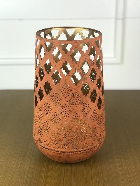 Porta vela metal envelhecido vazado G – REF 58406