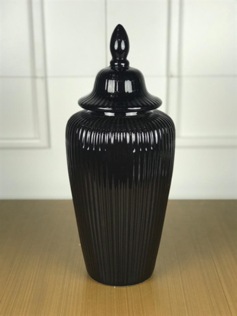 Potiche Cerâmica Preto Canelado G tampa – REF 46068