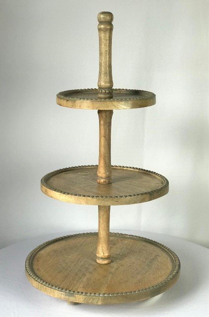 Suporte de doces 3 andares em madeira natural – REF 138631