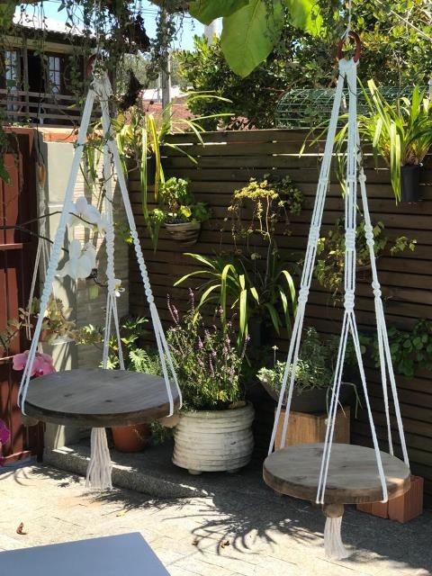Suporte de doces macramê com bandeja madeira G – REF 3970