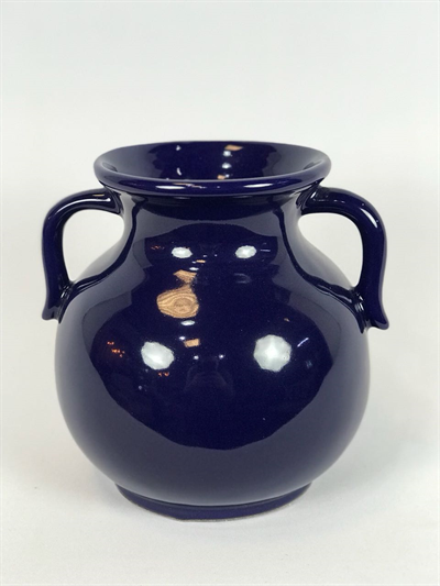 Vaso cerâmica azul cobalto baixo com alça