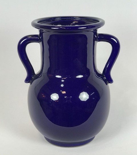 Vaso cerâmica azul cobalto alto com alça –