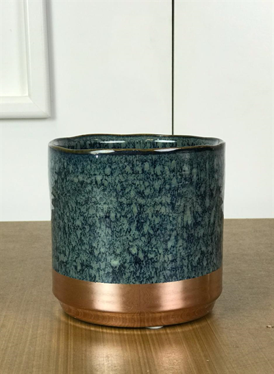 Vaso Cerâmica Esmaltada azul e rose gold pequeno –
