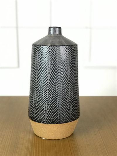Vaso Cerâmica Étnico Cinza 32x14cm –