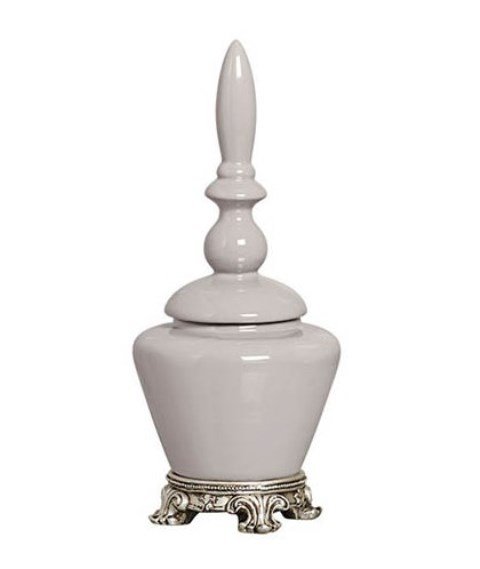 Potiche cerâmica off white P com base em resina prata