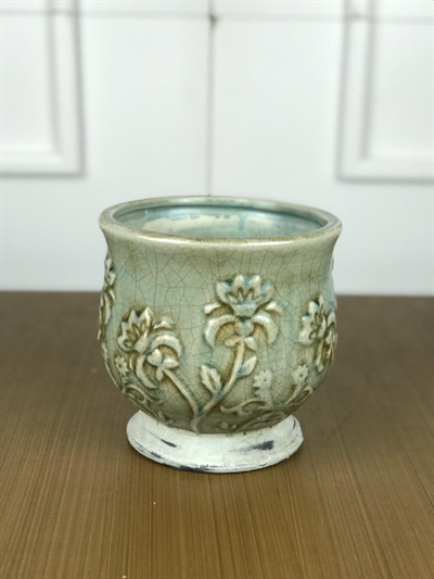 Vaso cerâmica verde arabesco floral –